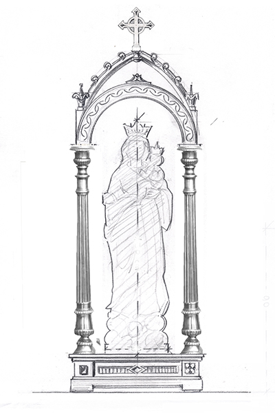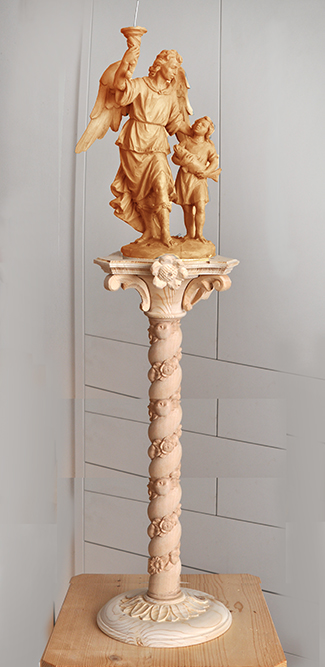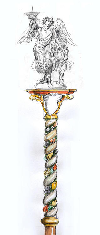 Progetto e modello per un candelabro con la statua di San Raffaele
