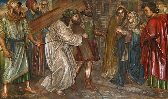 Gesù incontra sua madre, formella della Via Crucis a Eggerstanden,