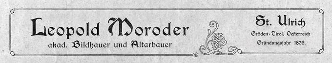 nello stesso anno fondò la ditta "Leopold Moroder, scultore accademico e